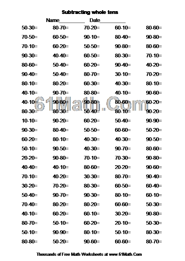 Subtracting whole tens Worksheet