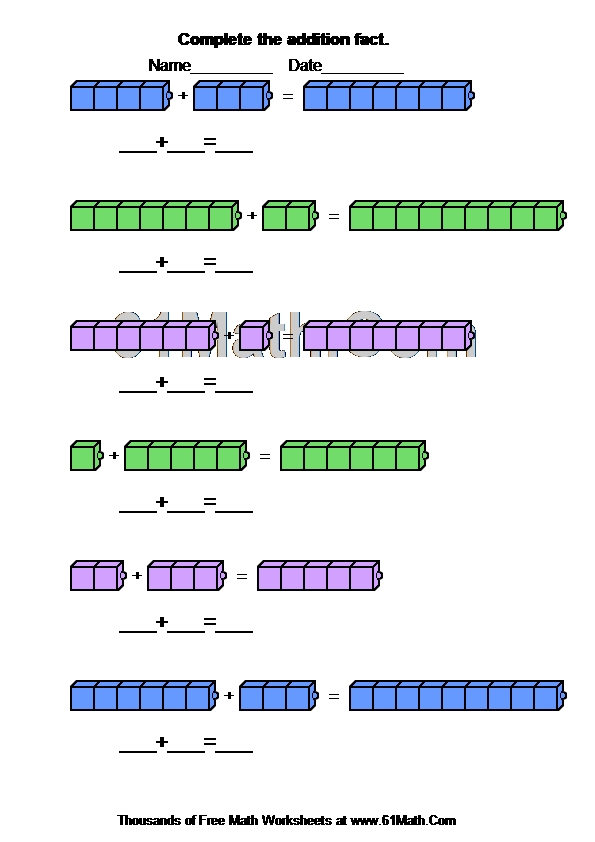 Complete the addition fact. Worksheet