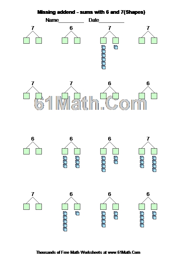 Missing addend - sums with 6 and 7(Shapes) Worksheet