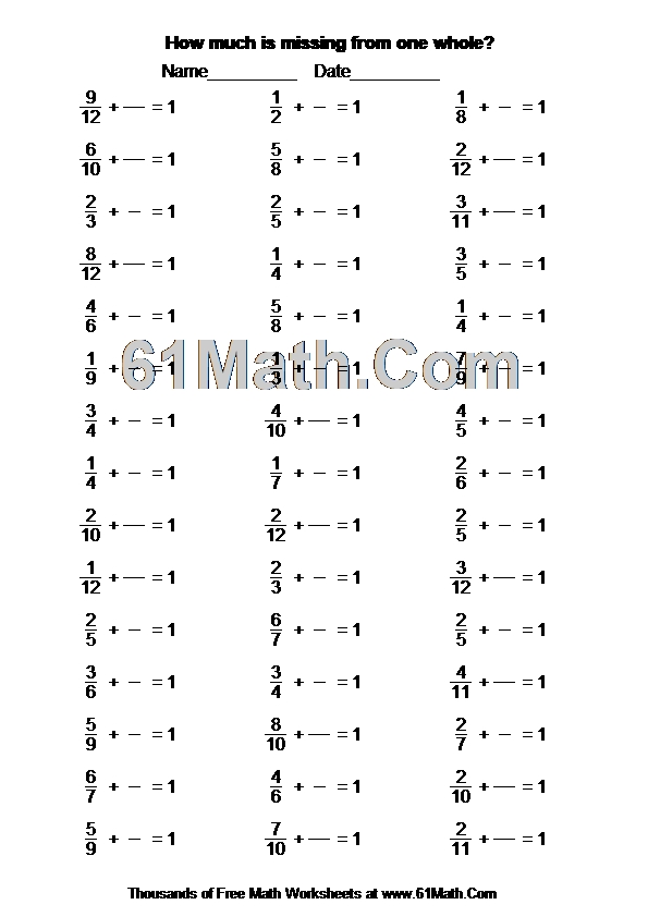 How much is missing from one whole? Worksheet