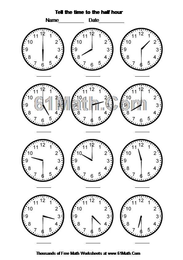 Tell the time to the half hour Worksheet