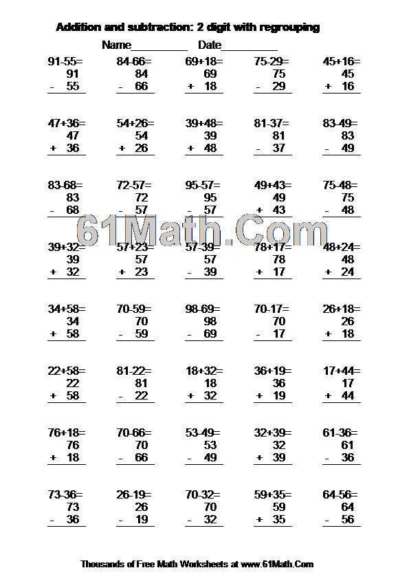 Addition and subtraction: 2 digit with regrouping Worksheet